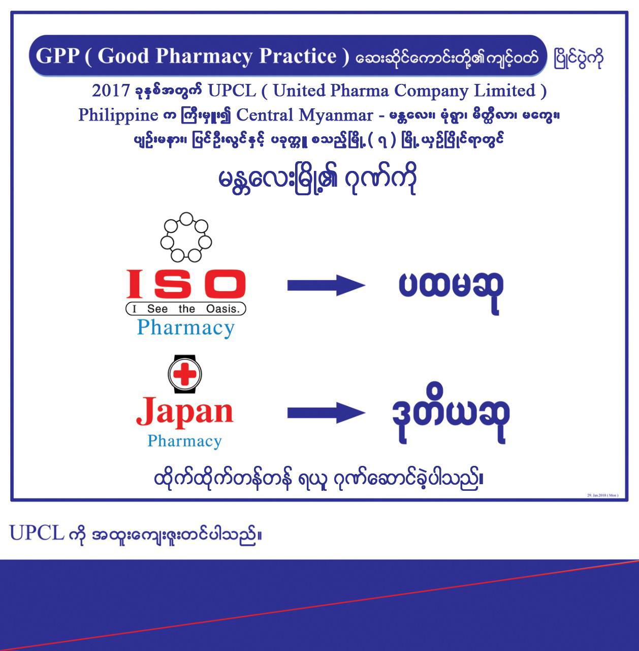 စိတ်ချမ်းသာစရာ ဆေးဆိုင်တစ်ဆိုင် ဖြစ်ရမယ်ဆိုတဲ့ ရည်ရွယ်ချက်နဲ့ ဆေးဆိုင် စဖွင့်ခဲ့တယ်။ ရိုးရိုးသာမန်ဆိုင်ဖွင့်မယ်ဆိုရင်တော့ လွယ်ကူတယ်။ အဆင့်မြင့် ဆေးဆိုင်အဖြစ်လုပ်ဖို့ကျ ခက်ခဲတယ်။ အဆင့်မြင့်ဆေးဆိုတာက ဆေးဝါးသိုလှောင်ထားမှု၊ ဆိုင်အခင်းအကျင်း၊ သတ်မှတ်စည်းကမ်းတွေလိုက်နာမှု ဒါတွေကို စနစ်တကလိုက်နာပြီး ဖွင့်နိုင်တဲ့ဆေးဆိုင်မျိုးကို ပြောတာပါ။ အကျယ်ချဲ့ပြောရရင် ကျွန်တော်တို့ရောင်းချနေတဲ့ဆေးတွေက ဓါတုဆေးဝါးတွေ၊ ဒီဆေးဝါးတွေကိုသတ်မှတ်ထားရှိရမယ့် အပူချိန်နဲ့အညီထားရှိဖို့၊ သက်တမ်းလွန်ဆေးဝါးတွေ မရောင်းချဖို့၊ ဆေးသိုလှောင်ထားရှိရာမှာ သန့်ရှင်းပြီးစနစ်တကျရှိဖို့ အဲ့ဒါမျိုးတွေကိုပြောတာပါ။ အထူးသဖြင့် ကာကွယ်ဆေးတွေဆို သတ်မှတ်ထားတဲ့ အပူချိန်အတိုင်းအတာထားနိုင်ဖို့အရေးကြီးတယ်။ အဲ့ဒီလိုမျိုးမှ မထားဘူးဆိုရင် ဆေးအာနိသင်ယုတ်လျော့မယ်။ ဆေးဝါးမှီဝဲသူ သုံးစွဲသူတွေအတွက် ထိရောက်တဲ့ဆေးအာနိသင်အစွမ်းမရနိုင်ဘူး။ စျေးရောင်းရပြီးရောဆိုပြီး လုပ်လို့မရဘူး။ ကိုယ်ချင်းစာစိတ်ထားကြည့်တယ်။ ငါဆိုလည်း ဒီလိုအာနိသင်ယုတ်လျော့တဲ့ ဆေးဝါးမျိုးသုံးမလား။ စျေးကြီးပေးဝယ်ရပြီးတော့ ဝေဒနာရှင်အတွက်နစ်နာမယ်။ ဒီလိုတော့ မဖြစ်စေရဘူး။ အမြတ်အစွန်းနည်းရင်နည်းပါစေ။ သတ်မှတ်စည်းမျဉ်းစည်းကမ်းထားသိုမှု၊ ဆေးသက်တမ်းတွေကို အလေးထားပြီး စနစ်တကျ အကုန်အကျခံပြီးလုပ်ခဲ့တယ်။ ဒီလိုလုပ်တဲ့အတွက် ကုန်ကျစရိတ်ကြီးတယ်။ စီးပွားရေးတွက်ချေမကိုက်ဘူး။ ဒါပေမယ့် လုပ်သင့်လုပ်ထိုက်တာကို စံပြသဘောနဲ့ စိတ်ချကောင်းမွန်တဲ့ ဆေးဆိုင်ဖြစ်ရမယ်ဆိုပြီး ဖွင့်ခဲ့တာ။ ၂နှစ်လောက်ထိအတော်ရုန်းကန်ခဲ့ရတယ်။ ၂နှစ်ကျော်နောက်ပိုင်းမှ အဆင်ပြေရုံပဲရှိခဲ့တယ်။ အခုဆိုင်ဖွင့်တာ ၅နှစ်သက်တမ်းပြည့်ပြီ။ ဒီစံချိန်စံညွှန်းတွေအတိုင်း ဆက်လုပ်သွားမှာပါ။ ဒီနှစ် ၅နှစ်ပြည့်မြောက်မှာ GPP (Good Pharmacy Practice)ပြိုင်ပွဲမှာ ကျွန်တော့်ဆိုင်က ပထမဆုရတယ်။ မန္တလေးဂျပန်ဆေးဆိုင်က ဒုတိယဆုရတယ်။ ဒီလိုရခဲ့တာဟာ နိုင်ငံတကာ အဆင့်မီပြီးဆေးဆိုင်ကောင်းတွေရဲ့ ကျင့်ဝတ်နဲ့ လုပ်ဆောင်ချက်ကောင်းတာကြောင့်ပါ။ ဆုရခဲ့တဲ့အတွက်လည်းဝမ်းသာဂုဏ်ယူမိသလို ကျွန်တော်ရဲ့စေတနာထား ကိုယ်ချင်းစာစိတ်ထားပြီး ဆေးဆိုင်ရဲ့ ကျင့်ဝတ်နဲ့ ပြည့်စုံတာကြောင့်လို့လည်းယုံကြည်မိပါတယ်။ နောက်ပြီး ကျွန်တော်တို့ဆိုင်မှာ ဆေးဝယ်သူတွေကို အကြံဉာဏ်ပေးနိုင်ဖို့ ဆေးဝယ်သူတွေကို အကြံဉာဏ်ပေးနိုင်ဖို့ ဆရာဝန်တွေလည်း ခန့်ထားရှိပါတယ်။ ဆေးဝါးကျွမ်းကျင်ဘွဲ့ရတွေလည်းရှိပါတယ်။ ဆေးဆိုင်ကောင်းတွေရဲ့ ကျင့်ဝတ်နဲ့ အညီဆေးဝါးလာရောက်ဝယ်ယူသူတွေ စိတ်ချမ်းသာစရာ အာနိသင်မပျက်ဆေးစစ်ဆေးမ